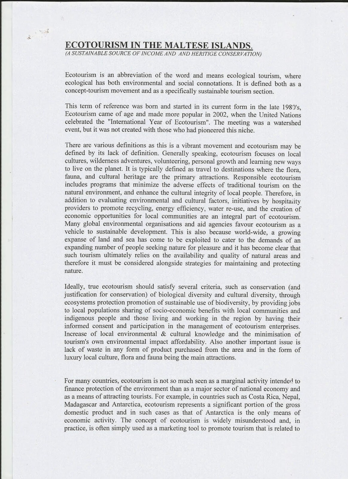 SCIBERRAS, A. (2008) Ecotourism in the Maltese Islands. Presented to the Conference for sustainable tourism 6.4.08: 4pgs.